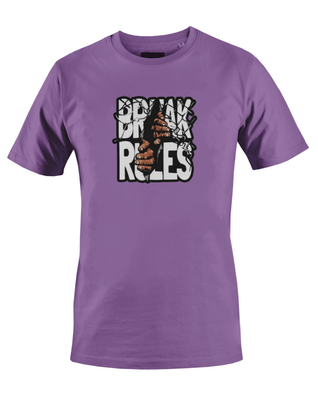 Stand out and make your voice heard with the Break Rules T-Shirt. This black tee features a powerful graphic of hands ripping through the words “BREAK RULES”, symbolizing rebellion, strength, and the courage to defy limitations.