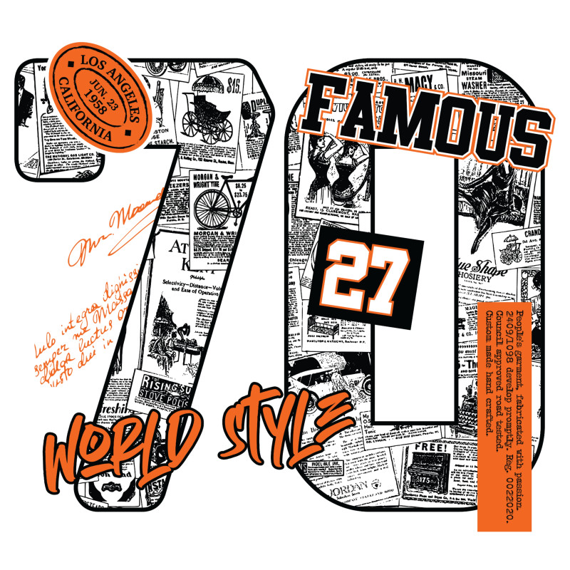 Upgrade your casual wardrobe with this trendy “70” graphic T-shirt featuring a bold newspaper-style print with stylish orange accents. The modern street-style design makes it perfect for everyday wear and fashion-forward looks.