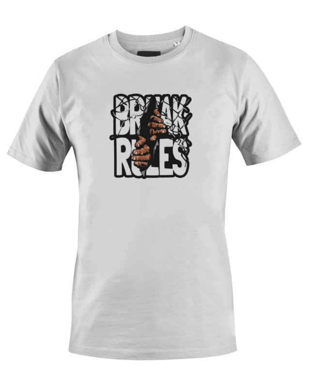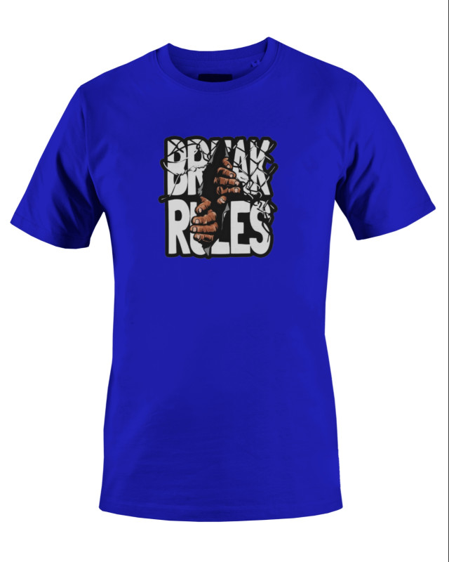 Stand out and make your voice heard with the Break Rules T-Shirt. This black tee features a powerful graphic of hands ripping through the words “BREAK RULES”, symbolizing rebellion, strength, and the courage to defy limitations.