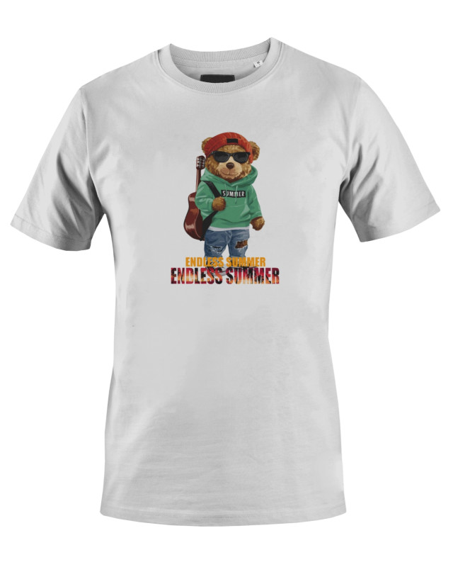 Stay cool and stylish with the Endless Summer T-shirt, featuring a trendy bear graphic with sunglasses, hoodie, and guitar — capturing the perfect summer vibe. Ideal for casual wear, travel, and everyday outings.