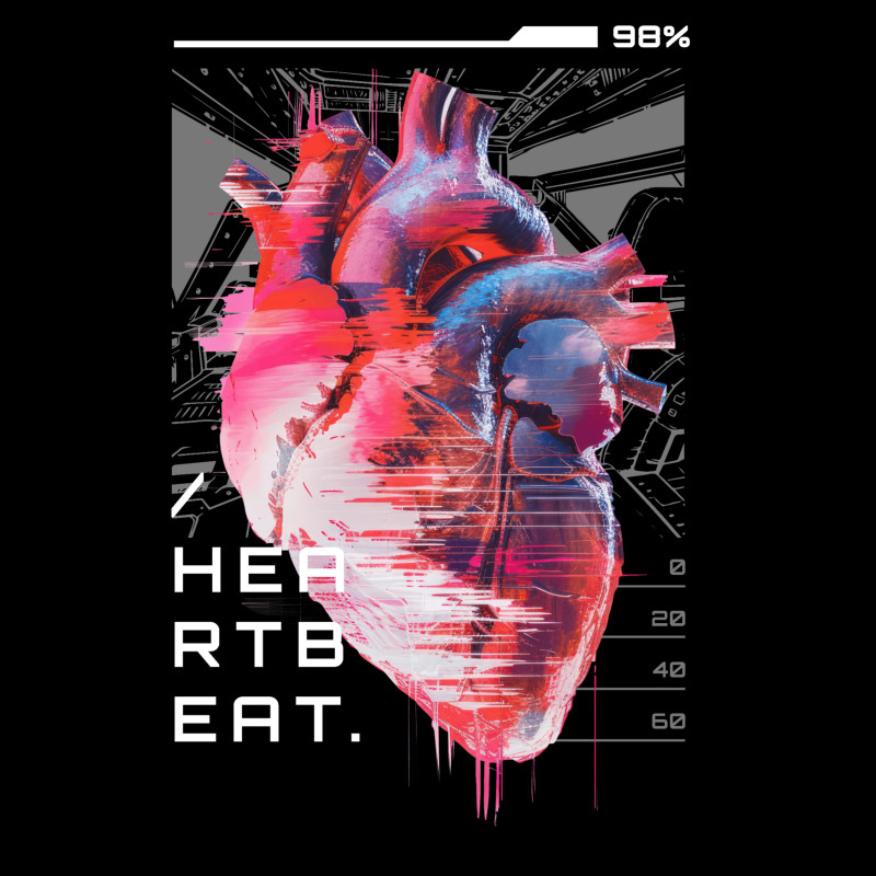Make a bold style statement with the Heart Beat T-shirt, featuring a striking digital heart graphic with a modern, futuristic vibe. Perfect for those who love unique, artistic designs with meaning.